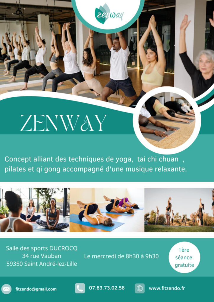 Nouveauté pour la rentrée 2025: nous mettons en place un créneau Zenway le mercredi de 8h30 à 9h30 salle Ducrocq à Saint André .